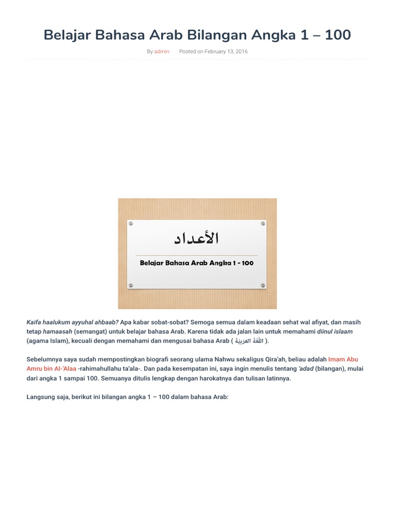 Demikian pemaparan tulisan angka dalam bahasa arab, mulai dari angka 1 sampai 100 berikut cara bacanya atau tulisan latinnya.
